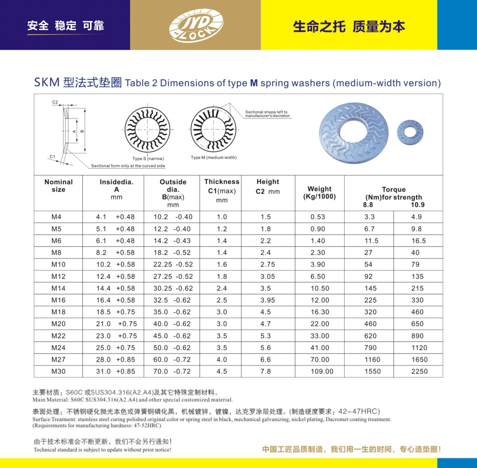 SKM鎖緊墊圈執(zhí)行標(biāo)準(zhǔn)化生產(chǎn),規(guī)格:M4-M30都有現(xiàn)貨 ,主要鋼質(zhì):S60C.C67S、合金鋼等。硬化等級(jí):HRC42-45