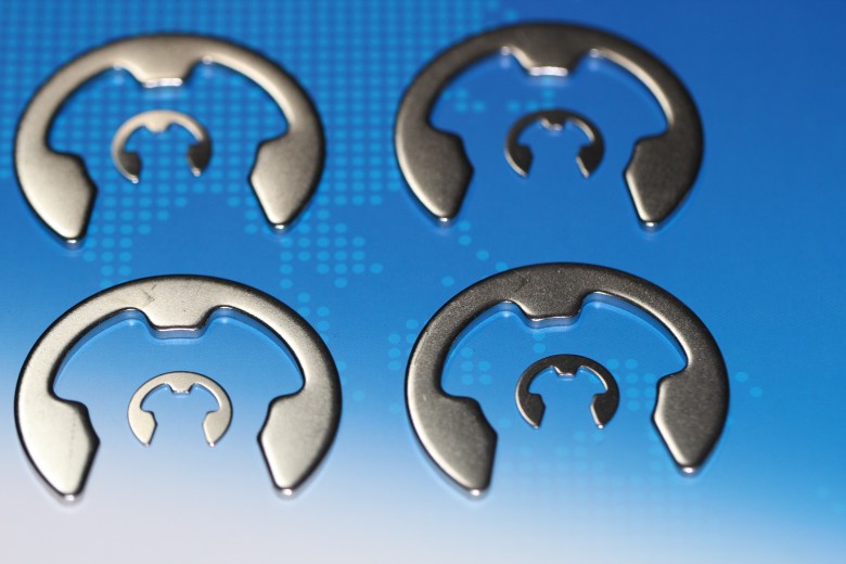 德國標準DIN6799開口擋圈,使用65MN,C67S彈簧鋼材質(zhì)及SUS304.SUS316/EN1.4301.EN1.4401不銹鋼材質(zhì),硬化質(zhì)量穩(wěn)定,回彈性好!彈簧鋼表面磷化黑,機械鋅等!鹽霧可達500H以上,保證無氫脆斷裂!瑞士模具制造設備,可生產(chǎn)0.8微精密開口擋圈,史特牢公司級進模具生產(chǎn)高效率低成本!