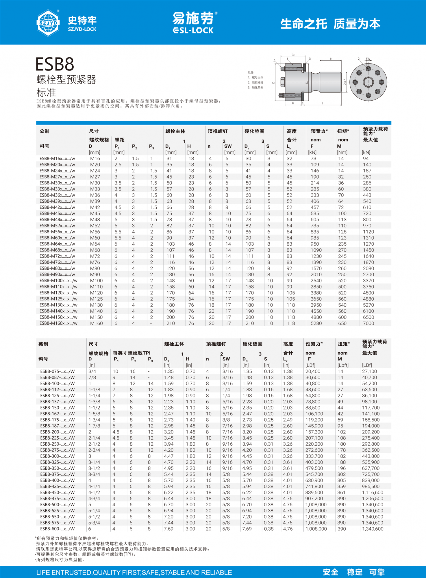 多頂推超級預(yù)緊器,可在很小空間安裝,使用簡單工具即可輕松預(yù)緊,節(jié)省安裝時間,ESL-LOCK品牌易施勞超級螺母具有完全的防松鎖緊功能,可多次拆卸重復(fù)使用。特別適用于M24規(guī)格以上大型螺栓鎖緊!一擰永固,永不松動!使用常規(guī)格為合金材料及特殊不銹鋼合金材料以及鎳基合金材料!更多了解歡迎咨詢我們.....